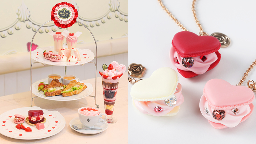 Q-pot CAFE.のバレンタイン ハートがいっぱいのパフェ&アフタヌーンティー、ハート型マカロンのアクセサリー