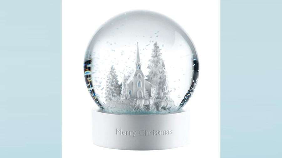 ウェッジウッドのクリスマス限定スノードーム、もみの木や白亜の教会を閉じ込めた英国の冬景色